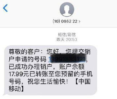 销号成功后,会有短信提醒。