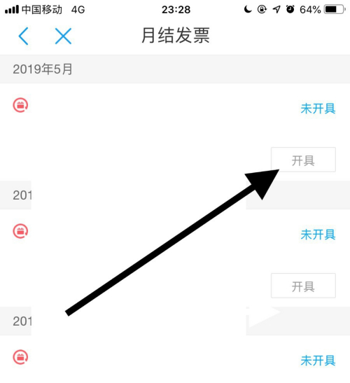 接着点击一个要开具月结发票右侧的开具。